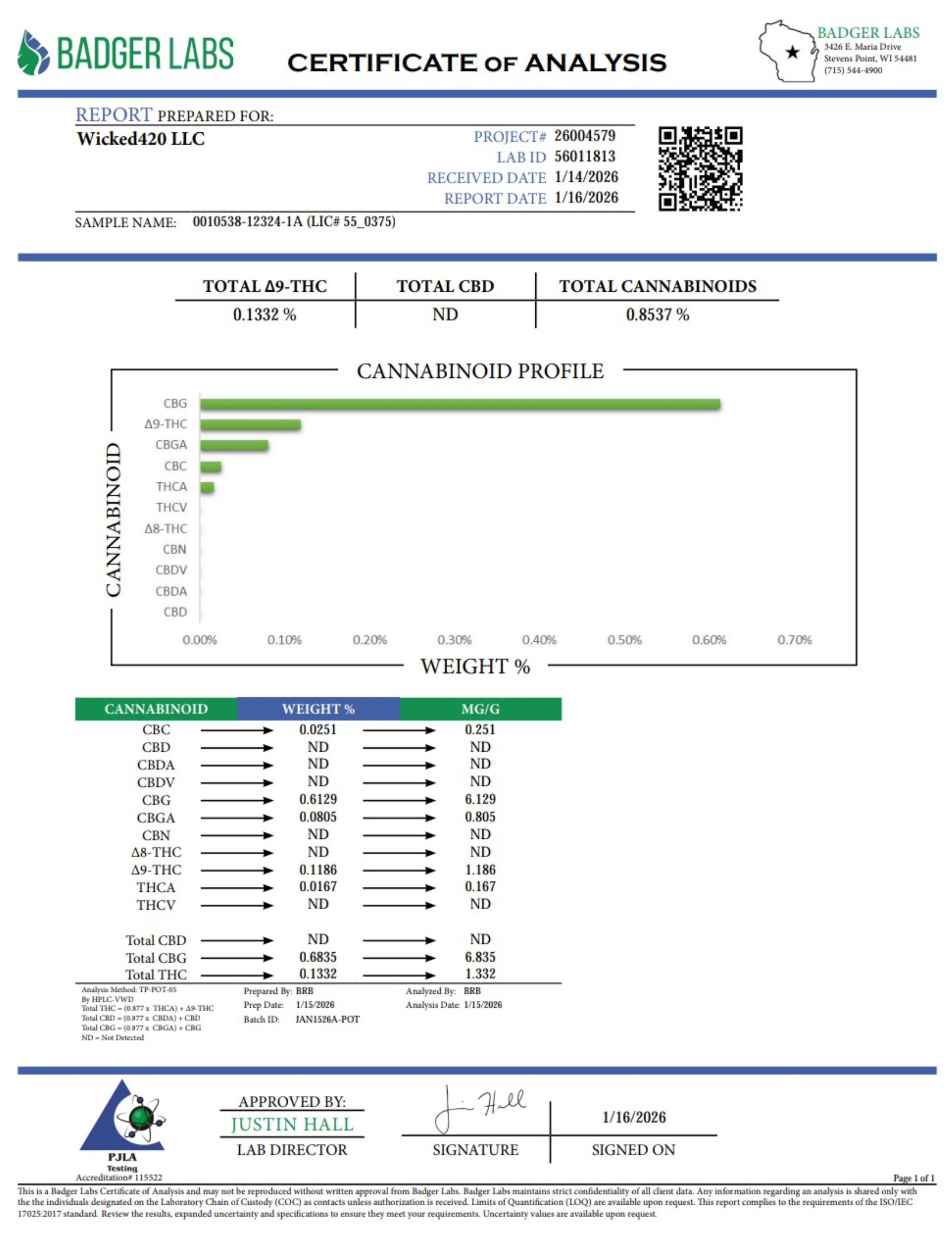 Our hemp products are collected and tested by Badger Labs in Plover, Wisconsin.
